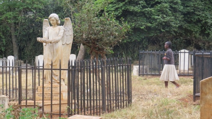 Girl walking past graveyard at Nairobi City Park. Copyright Rupi Mangat Feb 2019 (800×450)
