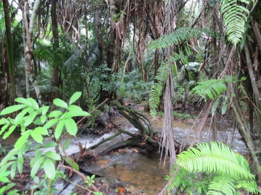 Road to Morogoro fringed with wild palm trees and crstal clear stream from Matambwe Gate Nyerere National Park. Copyright Rupi Mangat (800×600)