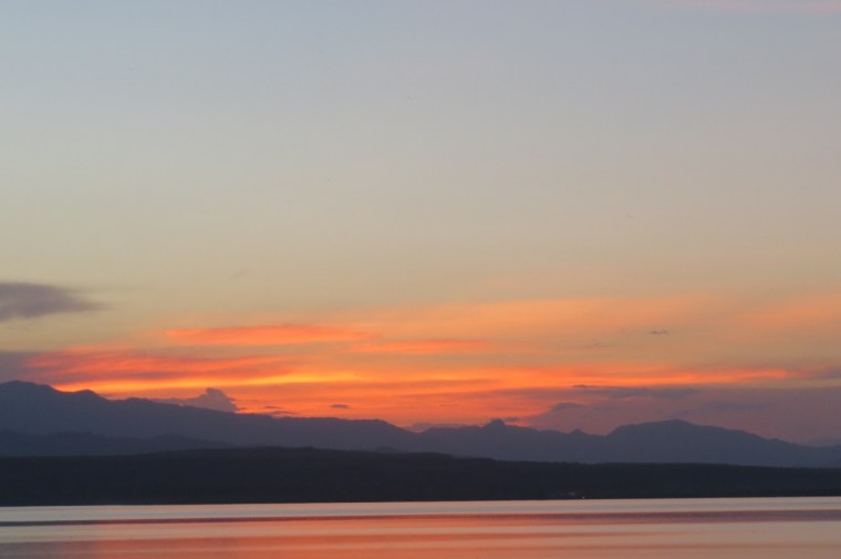The great day arrives and the sky pushes aside the clouds giving a fantastic view of god’s mountain with the grass shimmering with the morning dew. The latest addition in the garden is the elephant browsing by the acacia – it’s a life-size tin model of the real thing just as is the giraffe’s neck popping through the long strands.