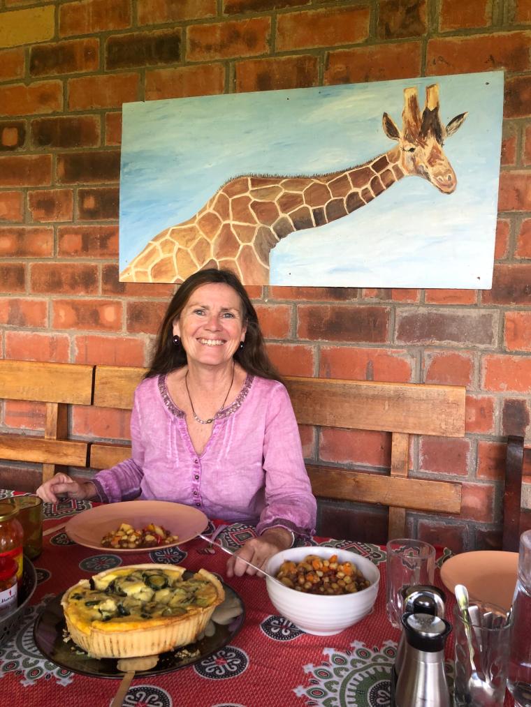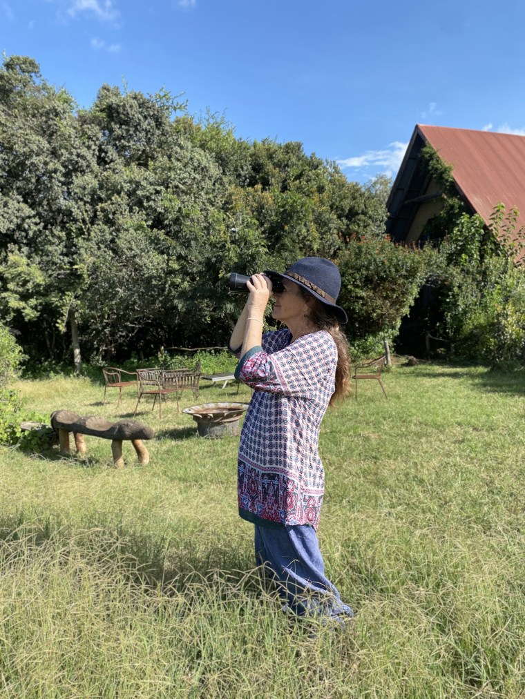 Above: Petra Allmendinger birding at breakfast on Global Big Day at Sandai House in Mweiga. Courtesy Petra Allmendinger