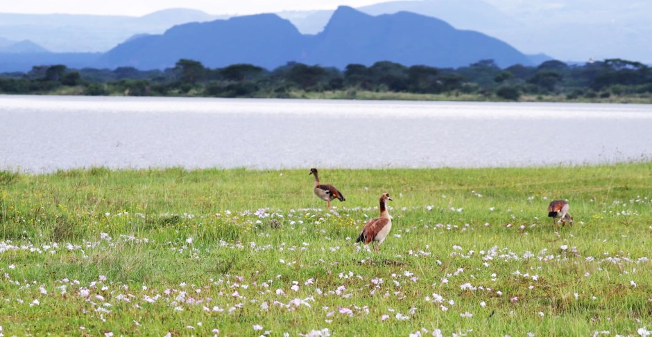 The list expands, a herd of Rothschild amble by, a pair of Silver-backed jackals frolic in the long grass and by the lakeshore that’s risen from a single-digit foot to 30-plus, the handsome bulls for beef with impressive humps are herded for a drink to the lake in the company of the Grey white pelican that perform a synchronized dance to gulp their fish. The now-submerged islands in the lake are their only breeding ground in East Africa.