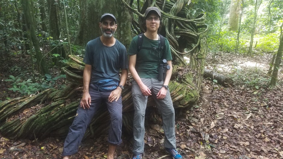 Above: Gautam (left) and Raff taking a break on the way to Goualougo Camp, Republic of Congo. Photo Credit David Morgan