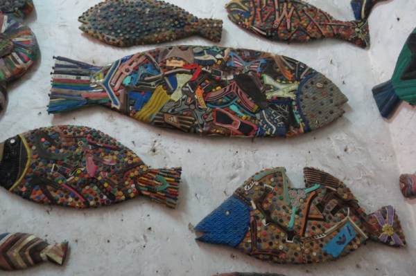 Fish – recycled from drift wood, pieces of dhows or rubber slippers art galllery on Lamu Stone Town on Lamu island